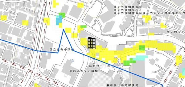 ●「警視庁犯罪情報マップ」の「全刑法犯発生数2024年累計」を見ると、麻布台1丁目は38件となっており、治安は“5段階で3番目のレベル”です。