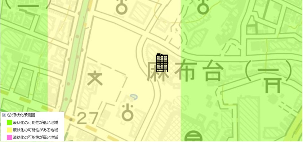●東京都建設局が公開している「東京の液状化予測図」では、「液状化の可能性がある地域」に該当します。