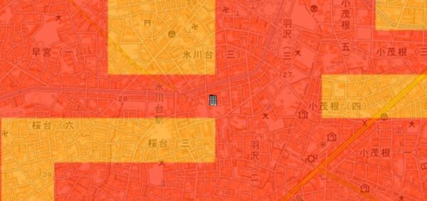 東京都の「地震に関する地域危険度測定調査」によると、「桜台3丁目」の地域危険度は“2”(※)であり、災害に比較的強い地域であるとされています。