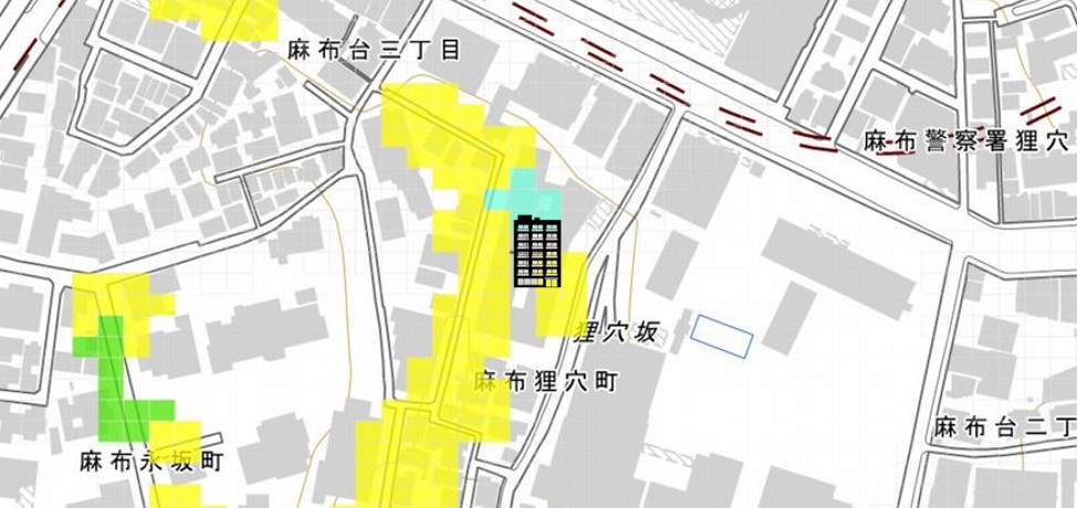 ●東京都の「地震に関する地域危険度測定調査」によると、「麻布狸穴町」の地域危険度は“1”(※)であり、災害に強い地域であるとされています。