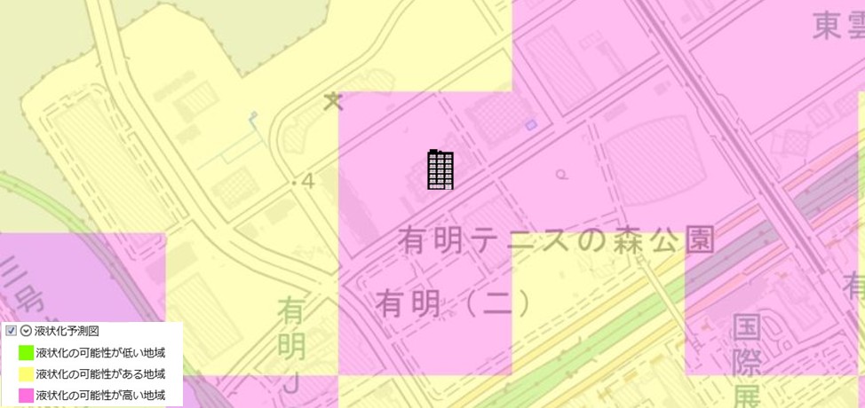 ●東京都建設局が公開している「東京の液状化予測図」では、「液状化の可能性が高い地域」に含まれています。