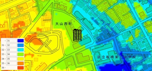 ●東京都の「地震に関する地域危険度測定調査」によると、「大山西町」の地域危険度は“2”(※)であり、災害に比較的強い地域であるとされています。