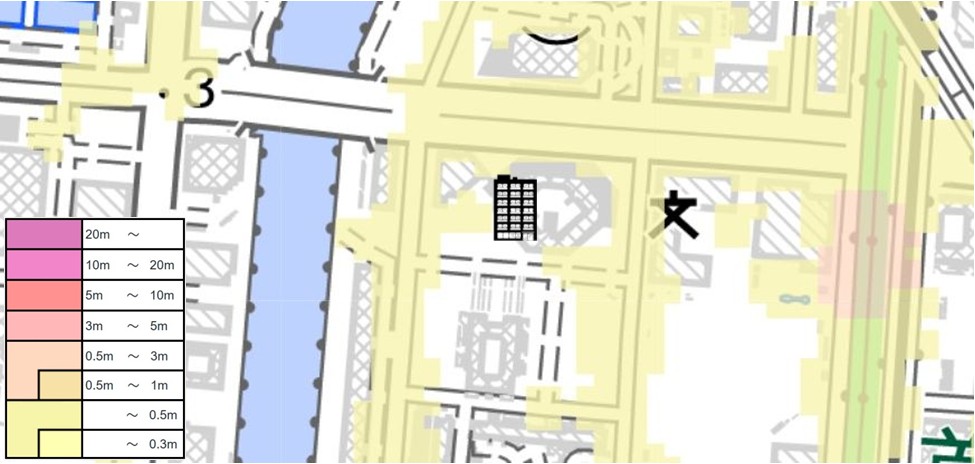 ●浸水可能性の指摘は0.5m未満にとどまるようです。