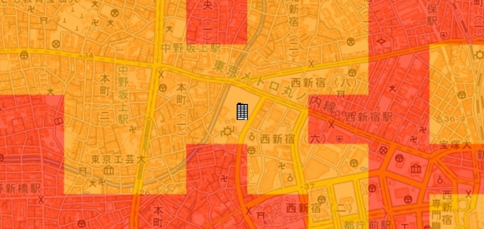 ●東京都の「地震に関する地域危険度測定調査」によると、「西新宿5丁目」の地域危険度は“3”(※)であり、災害リスクが多少残る地域であるとされています。
