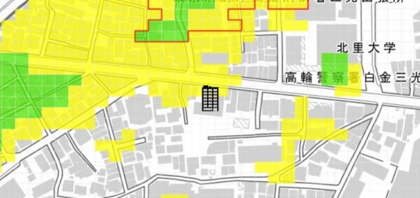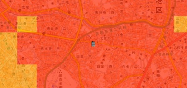 ●東京都の「地震に関する地域危険度測定調査」によると、「白金6丁目」の地域危険度は“3”(※)であり、災害リスクが多少残る地域であるとされています。