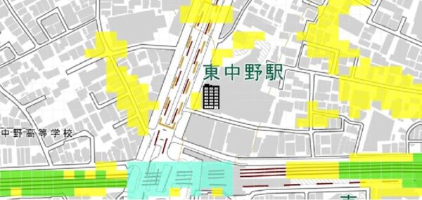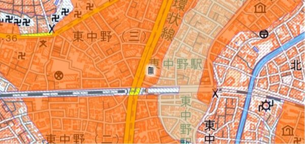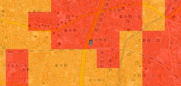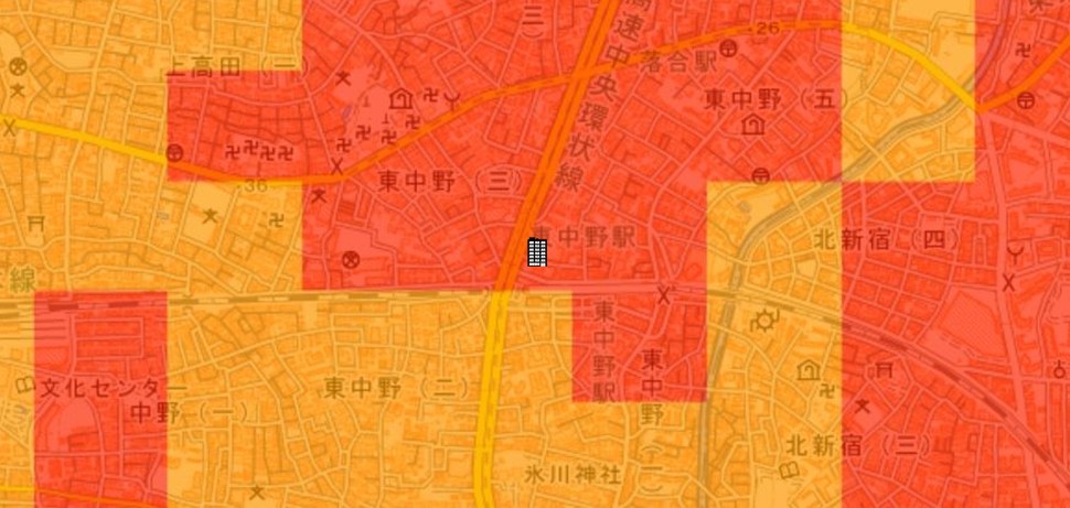 ●東京都の「地震に関する地域危険度測定調査」によると、「東中野4丁目」の地域危険度は“3”(※)であり、災害リスクが多少残る地域であるとされています。