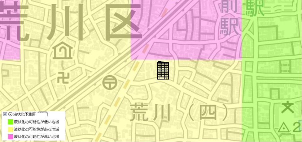 ●東京都建設局が公開している「東京の液状化予測図」では、「液状化の可能性がある地域」に該当します。