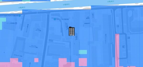 ●ただ、対象地の周辺は、マンション等の大きな建物がまとまっているエリアであり、地域の災害リスクの影響を受ける程度は低いでしょう。