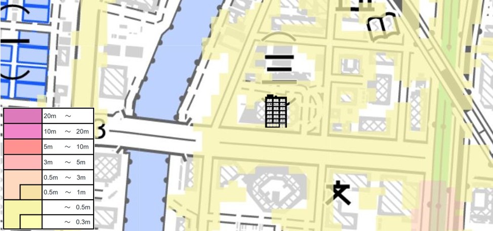 ●運河に囲まれた立地です。大地震や大水害で、運河にかかる橋が損傷するなど、橋の通行に支障が生じる事態となると、避難や救助が遅れる可能性があります。