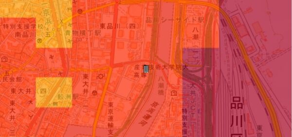 東京都の「地震に関する地域危険度測定調査」によると、「東大井1丁目」の地域危険度は”2”(※)であり、災害に比較的強い地域であるとされています。
