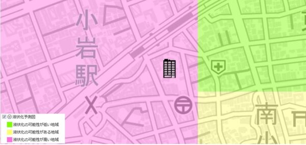 ●東京都建設局が公開している「東京の液状化予測図」では、「液状化の可能性が高い地域」に該当します。