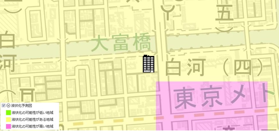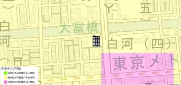 ●東京都建設局が公開している「東京の液状化予測図」では、「液状化の可能性がある地域」に含まれています。