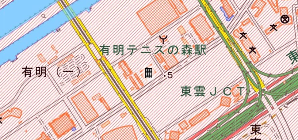 ●「液状化の可能性が高い地域」及び「沖積層の堆積エリア」に該当する、湾岸の埋立地に位置します。