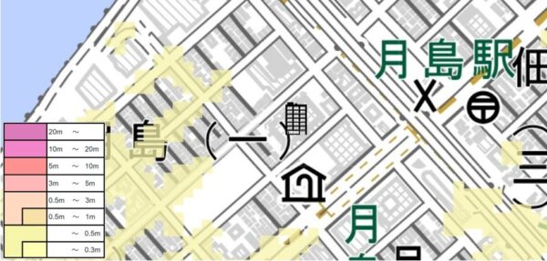 湾岸の埋立地で約0.6mの浸水可能性が指摘されているので、浸水リスクは顕在です。