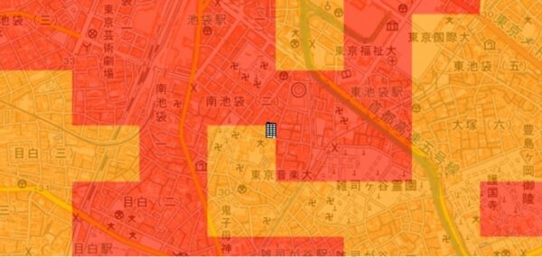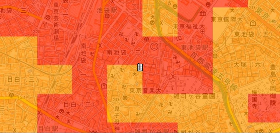 東京都の「地震に関する地域危険度測定調査」によると、「南池袋2丁目」の地域危険度は“1”(※)であり、災害に強い地域であるとされています。