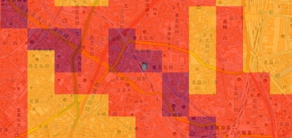 目黒川沿いで、約2.3mの浸水可能性が指摘されているので、浸水リスクは大きいです。