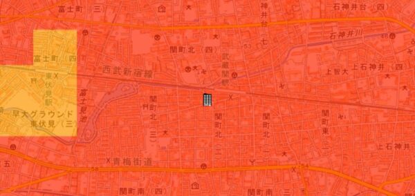 ●東京都の「地震に関する地域危険度測定調査」によると、「関町北2丁目」の地域危険度は“1”(※)であり、災害に強い地域であるとされています。