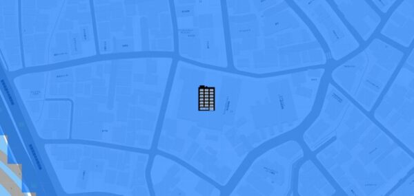 海抜ゼロメートル地帯に位置し、4m超の浸水可能性が指摘されているので、浸水リスクは非常に大きいです。