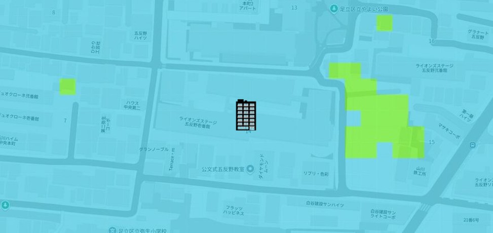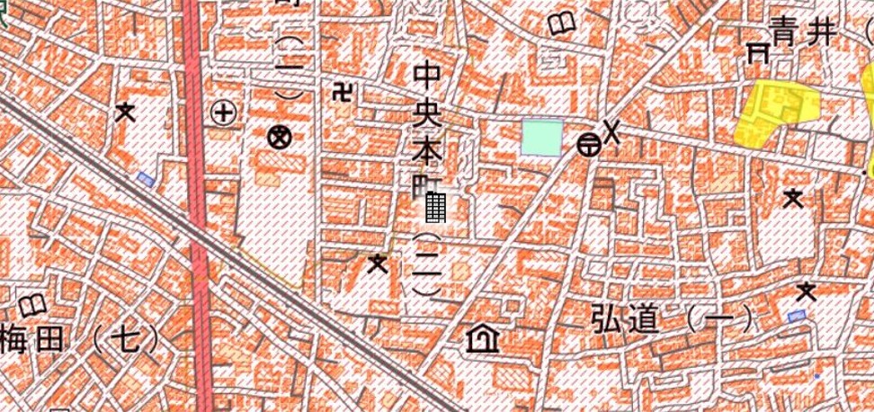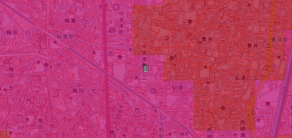 ●東京都の「地震に関する地域危険度測定調査」によると、「中央本町2丁目」の地域危険度は“3”(※)であり、災害リスクが多少残る地域であるとされています。