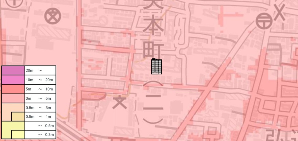 | 浸水深 | [高潮]約1.7m [洪水・内水氾濫]3m~5m |