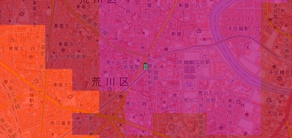 東京都の「地震に関する地域危険度測定調査」によると、「荒川3丁目」の地域危険度は“3”(※)であり、災害リスクが多少残る地域であるとされています。