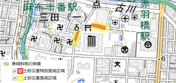 ※ [土砂災害警戒区域等マップ(東京都)] → [土砂災害警戒区域]タブ
