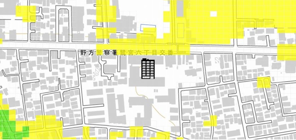 地盤に深刻な問題はないと推察される場所に建つ中層RC造建物なので、地震時に大きな損害が発生する可能性は低いと判断します。