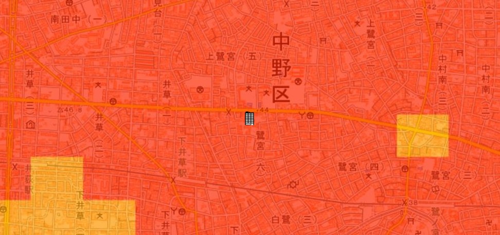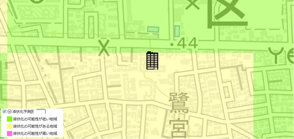 ●東京都建設局が公開している「東京の液状化予測図」では、「液状化の可能性がある地域」に該当します。