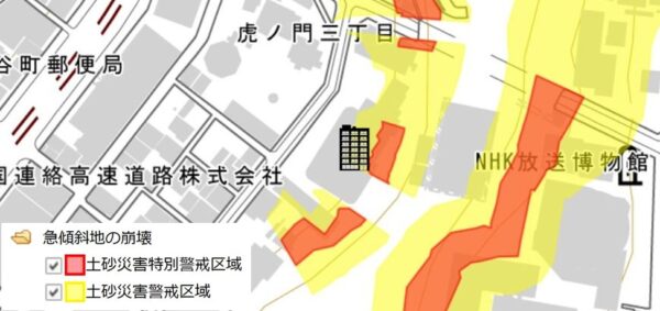 ※ [土砂災害警戒区域等マップ(東京都)] → [土砂災害警戒区域]タブ