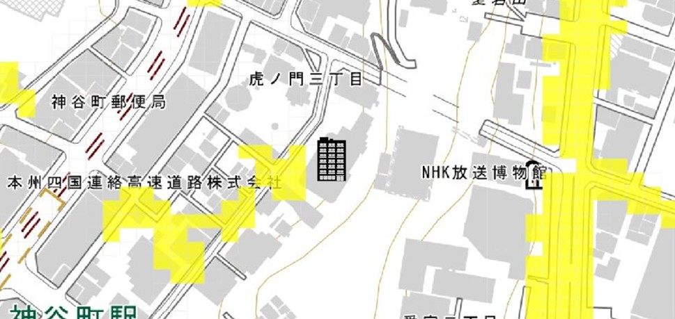 ●東京都の「地震に関する地域危険度測定調査」によると、「虎ノ門3丁目」の地域危険度は“1”(※)であり、災害に強い地域であるとされています。