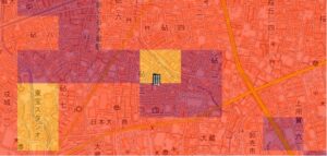 ●12万年前~16万年前に作られたという「埋没谷(東京層下部基底面)」の範囲に該当します。こちらも、大地震の際の揺れが大きくなる可能性を示す兆候です。