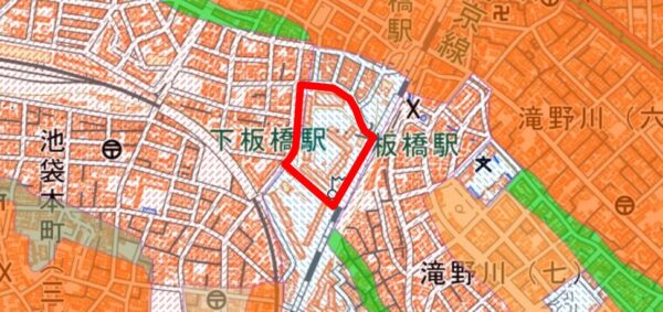 ●それに対して、北側の敷地が掛かっている「板橋区板橋1丁目」の地域危険度は“1”(※)であり、災害に強い地域であるとされています。