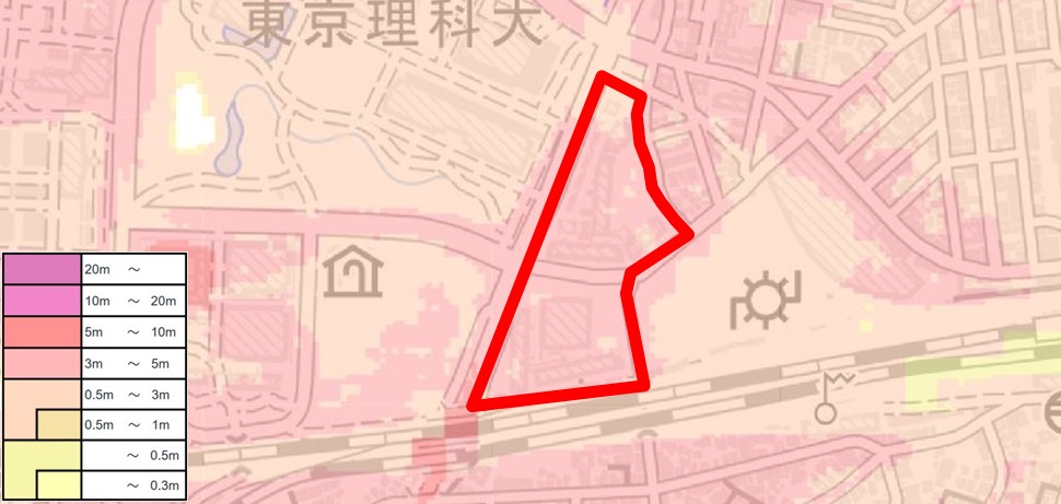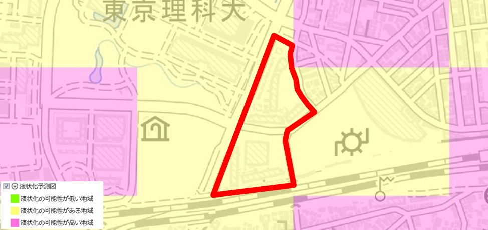 東京都建設局が公開している「東京の液状化予測図」では、「液状化の可能性がある地域」に含まれています。