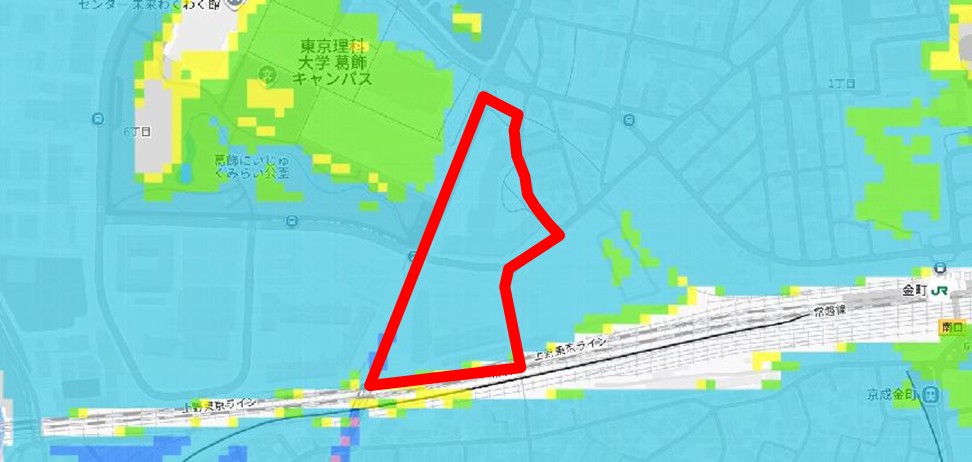 江戸川や中川河岸と標高を比べても、同等もしくは低いエリアです。