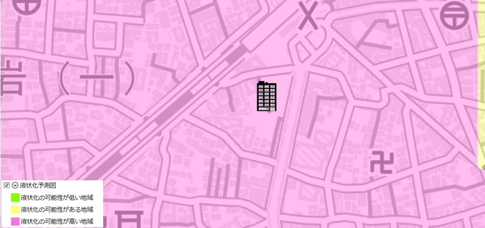 東京都建設局が公開している「東京の液状化予測図」では、「液状化の可能性が高い地域」に該当します。
