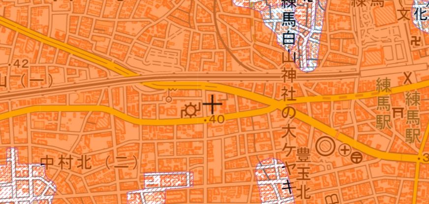 | 【対水害の評価】 [標高・地形] ●標高約41mの台地に位置します。 〔浸水深〕 ●浸水可能性は指摘されていません。 〔対水害総評〕 ●台地に位置し、浸水可能性の指摘がないので、浸水リスクは低いです。 |