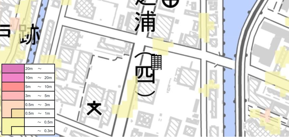 | 浸水深 | [高潮]約1.3m [内水氾濫・洪水]0.5m未満 |