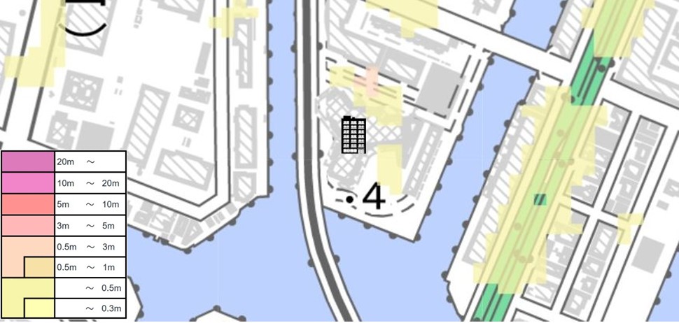 浸水深 [高潮]約0.5m [内水氾濫・洪水]0.5m未満