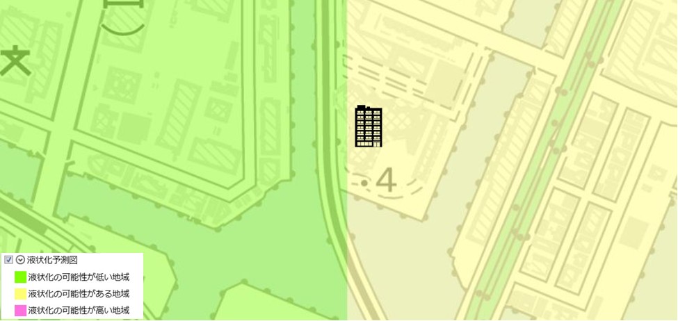 東京都建設局が公開している「東京の液状化予測図」では、「液状化の可能性がある地域」に含まれています。