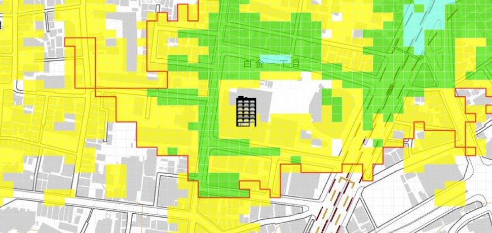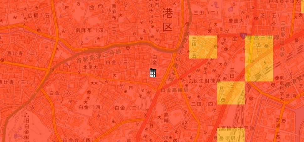 東京都の「地震に関する地域危険度測定調査」によると、「白金1丁目」の地域危険度は”2”(※)であり、災害に比較的強い地域であるとされています。