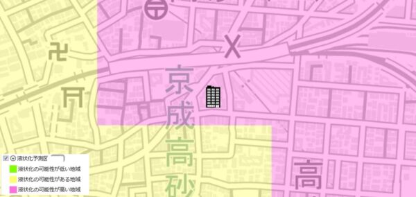 ●東京都建設局が公開している「東京の液状化予測図」では、「液状化の可能性が高い地域」に含まれます。