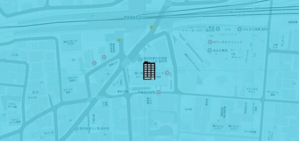 ●対象地の南西方には木造住宅が密集しているエリアがあるので、リスクがないとはいえませんが、対象地の周辺はRC造のビルが多いので、地域から受ける影響の程度はさほど大きくないように感じます。