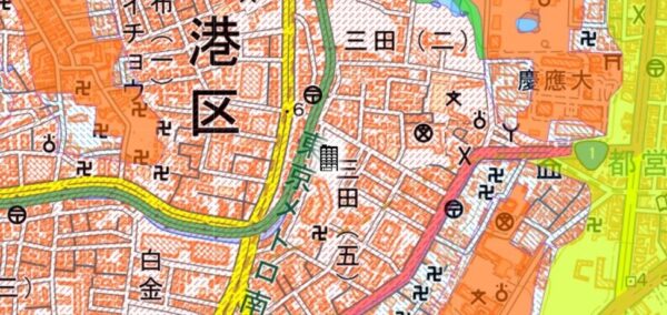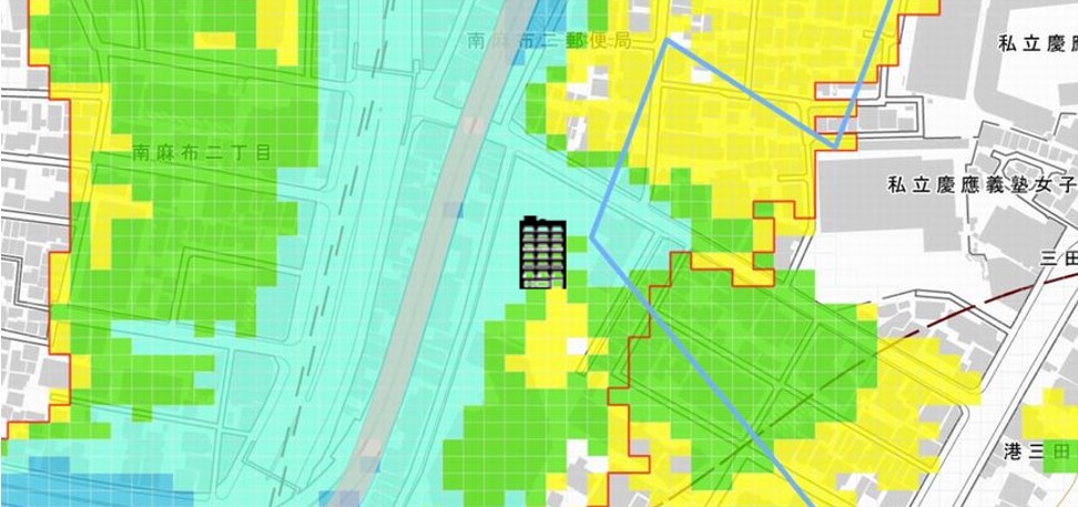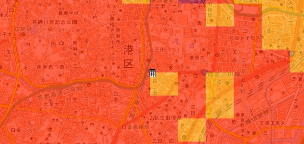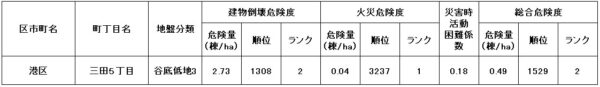 東京都の「地震に関する地域危険度測定調査」によると、「三田5丁目」の地域危険度は”2”(※)であり、災害に比較的強い地域であるとされています。