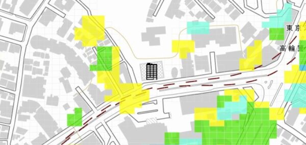 ●12万年前~16万年前に作られたという「埋没谷(東京層下部基底面)」の範囲に該当しますので、大地震時の揺れが大きくなる可能性があります。