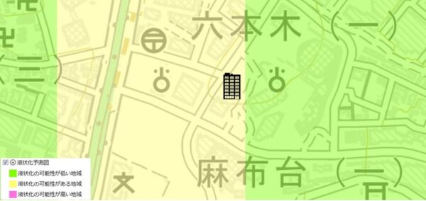 ●東京都建設局が公開している「東京の液状化予測図」では、「液状化の可能性がある地域」に該当します。