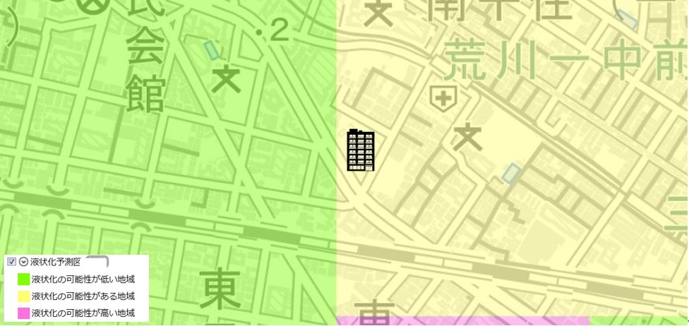 ●東京都建設局が公開している「東京の液状化予測図」では、「液状化の可能性がある地域」に該当します。
