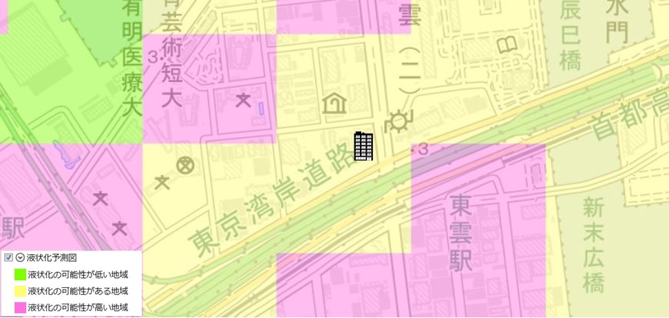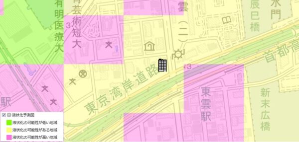 ●東京都建設局が公開している「東京の液状化予測図」では、「液状化の可能性がある地域に含まれています。